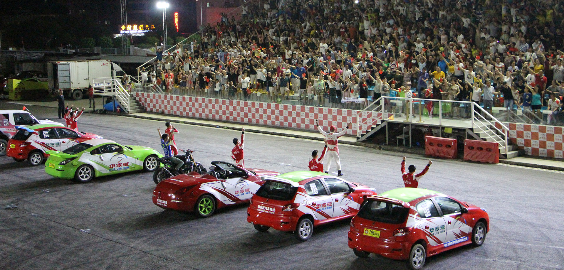 短短幾年發展,如今公司旗下已擁有國內外40余位簽約的頂級職業車手,組建了多只支能征善戰的獨立分隊,固定表演場地5處,而且在繼續增加,年觀眾總接待量突破了200萬人次。總部及基地坐落于依山面海,風景旖旎的廣東惠州巽寮灣,可同時容納1300人觀看表演。是國內規模最大,設施最齊全,陣容最豪華的汽車特技表演場地,創造了又一個中國之最。華家班這支鐵軍,正向著華慶先先生設立的“創造中國人世界頂級汽車特技巔峰”這一目標,勇往直前!